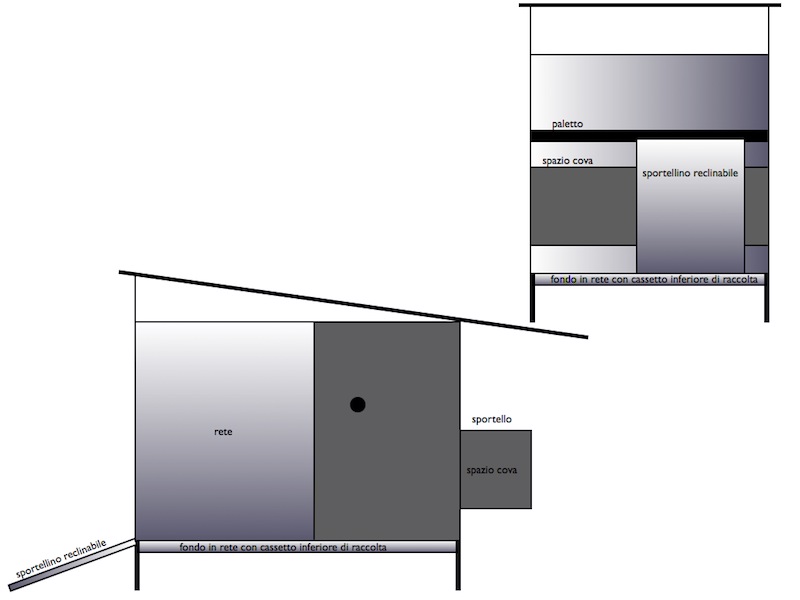 Avevo pensato di mettere delle casette più piccole nella zona non coperta (per tenere tutto differenziato), in modo da alloggiare le nuove arrivate al chiuso di notte e la mattina poterle aprire e tenerle tra l'erbetta...