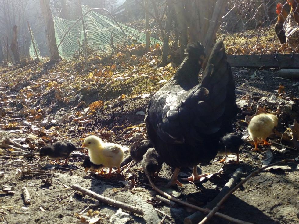 Scusate il ritardo, ecco alcune foto della chioccia con i pulcini: