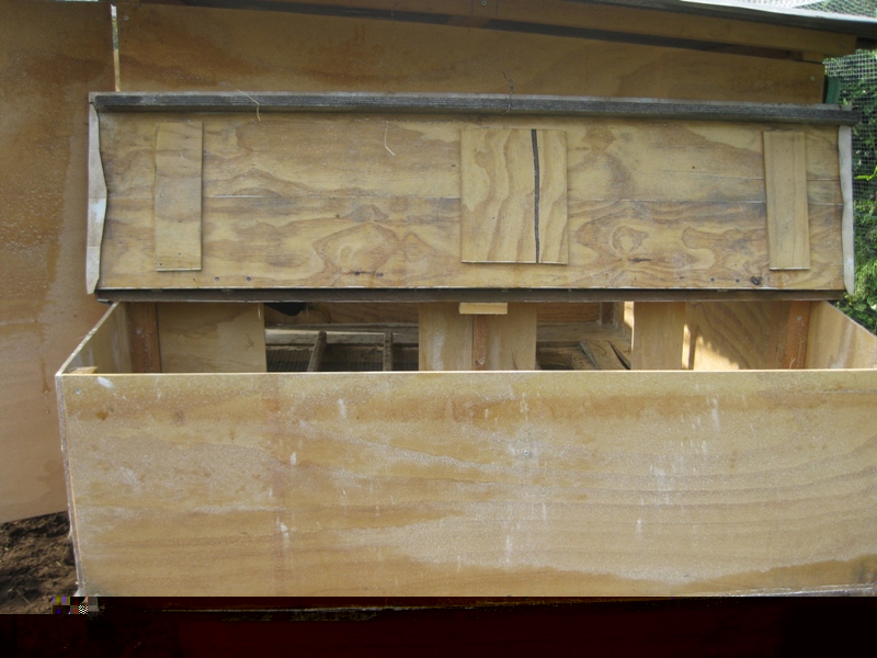 Con un pò di ritardo, anche su richiesta di qualche amico (faustospinu) vi posto l'interno del pollaio nel dettaglio. Vi riccordo la caratteristica principale, cioè che e spostabile all'interno del recinto per mezzo di due maniglioni, e la rastrelliera è asportabile per un più facile accesso all'interno e per una migliore facilità di pulizia. Altro dettaglio è il nido che è accessibile dall'interno e per il prelievo delle uova e per la pulizia dall'esterno.