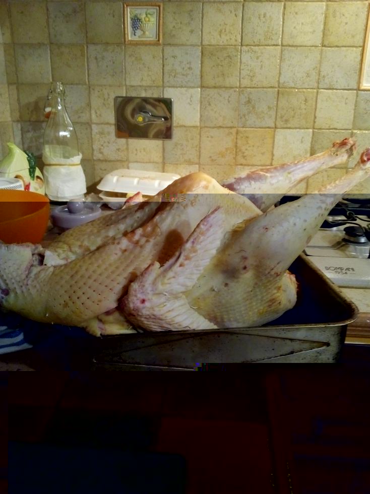 La cosa mi ha insospettito poiché siccome ho due maschi ed una femmina di tacchini marroni non so di che razza precisamente se castano d'Italia, rosso Borbone etc etc siccome uno era di troppo l'ho macellato età 7 mesi peso vivo 10,800 kg al macello kg 4,800, dopo la spiumatura ho notato che anch'esso aveva petto piatto e lo sterno era molto pronunciato (se è lo sterno) è il mio primo tacchino che allevo e macello, il mangime è lo stesso che ho dato ai polli inoltre entrambi li alimentavo con scarto di verdure ed erba estirpata dall'orto, il pollaio è di circa 30/35mq