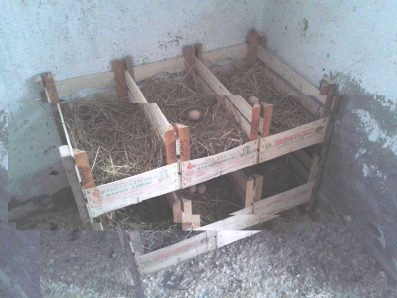 nella prima foto puoi vedere i miei posatoi. Per quanto riguarda i nidi, ho da poco costruito una struttura semplice utilizzando delle cassette della verdura/frutta e per ora credo che faccia discretamente il suo lavoro. L'unico materiale da aggiungere sono i quattro listelli che fungono da supporto per la struttura, dato che le cassette sono avvitate fra loro nel massellino degli angolari.
