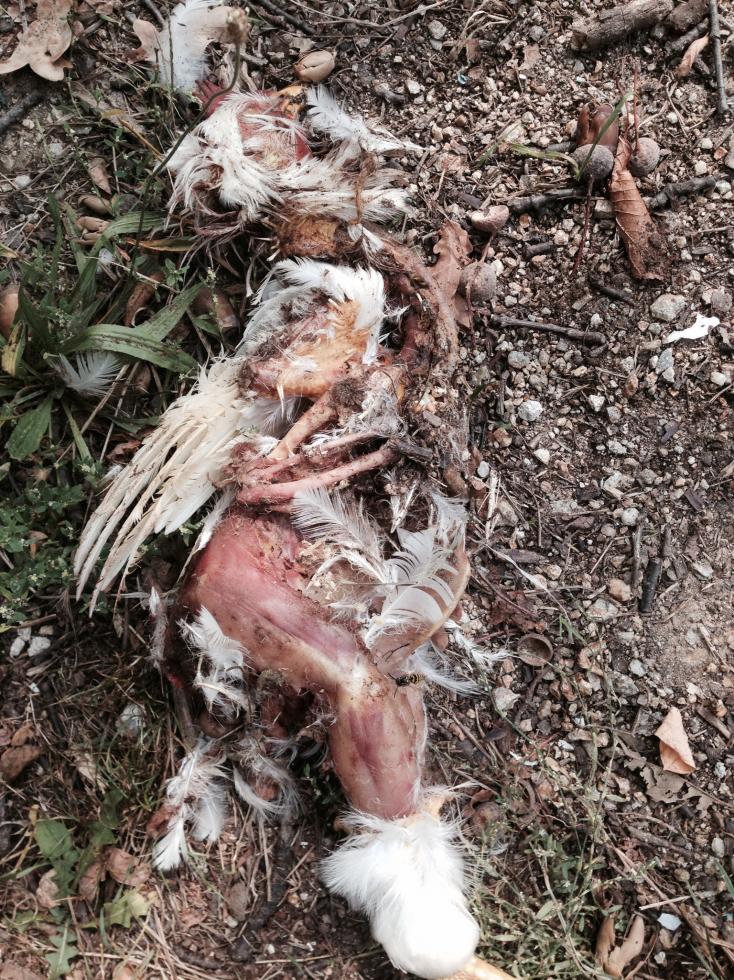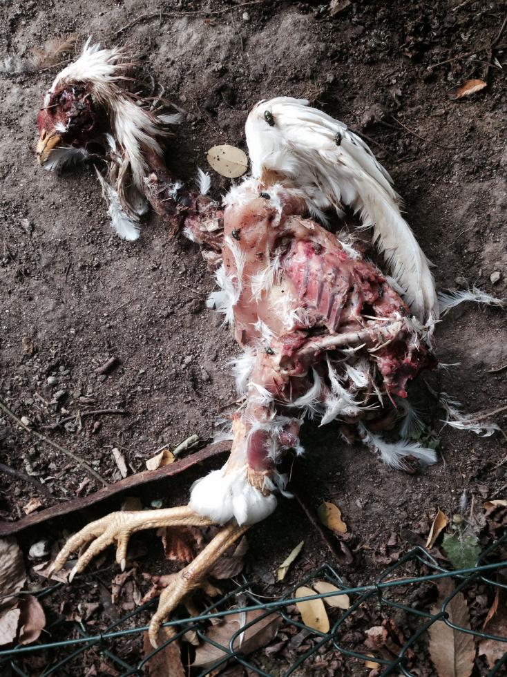 Buongiorno a tutti! Sono nuovo del forum e ho inaugurato da poco il mio pollaio amatoriale..... ma sono già arrivate le prime sorprese!( abbastanza sgradite) Vi chiedo un aiuto perché non ho la più pallida idea di chi possa essere il predatore che ha deciso di venire 'a mensa' da me. La gallina che vedete in foto e' stata sbranata durante la mattinata( di notte le galline sono chiuse) il pollaio e' circondato da recinzione, che non presenta nessun segno, ne buche ne pelo. La carcassa e' stata ritrovata in un angolo all'interno del pollaio stesso, a due metri da dov'è stata spiumata. Questa carcassa e' identica a quella trovata sempre nel pollaio 15gg fa, stessa modalità e nessuna traccia, con la differenza che non è stata spostata nemmeno di un metro. Abito in collina ed escluderei la presenza di cani randagi. Non saprei..... Non ha lasciato tracce entrambe le volte.. Sapete darmi un'opinione? Vi ringrazio