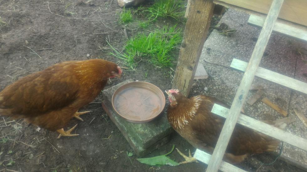 finalmente ho cominciato...  4 ovaiole di ~130gg arrivate dall'allevamento qualche gg fa, per ora mi tocca pure metterle manualmente sui posatoi  ma spero che nel giro di qualche gg familiarizzino con l'ambiente e, soprattutto, comincino a produrre qualcosa (nei nidi non sono ancora manco salite  ). per ora ho mescolato nella mangiatoia il mangime ovaiolo e granaglie (me l'ha consigliato l'allevatore) e la lascio sempre a loro disposizione, sto preparando l'abbeveratoio (quella ciotola è provvisoria)... in estate aggiungerò - con molta attenzione - qualche altro capo, intanto vediamo come va x ora.