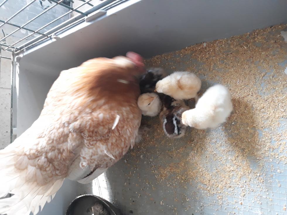 Un mesetto fa si è acchiocciata un'altra nanetta che ho deciso di schiocciare per mancanza di spazio riparato in cui mettere poi i pulcini. Invece a un'altra che ha iniziato a covare da due settimane ho messo 8 uova... vedremo tra una settimana cosa ne esce