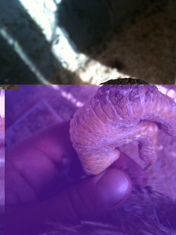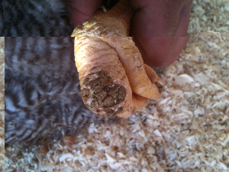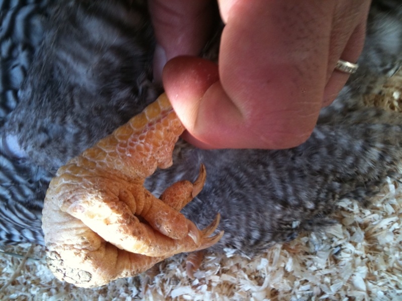 il secondo problema è ad una zampa "offesa" di un altra gallina che mi è stata regalata dall'allevatore proprio per questo motivo.