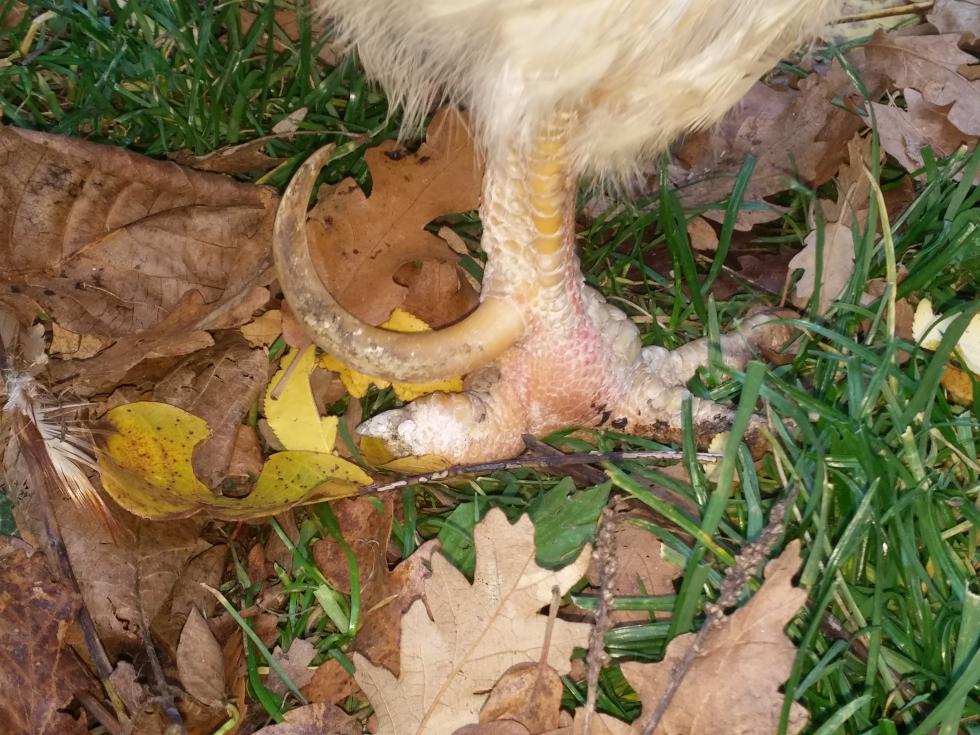 Ciao! Tempo fa il mio amatissimo Joffrey, un gallo livornese incrociato, era rimasto appeso per gli speroni alle scalette di legno del pollaio. Si era completamente distrutto una gamba con una frattura scomposta! Potevo scegliere se cucinarmelo con le patate o portarlo dal veterinario. Ho scelto la seconda e Joffrey è ancora qui a spadroneggiare nel pollaio! Io ti consiglio di cercare il veterinario più vicino a te, e che sappia il fatto suo, prima che il problema peggiori!