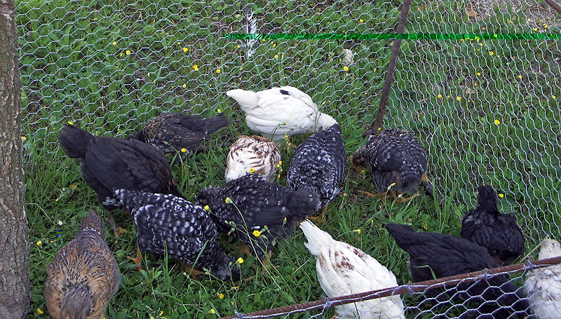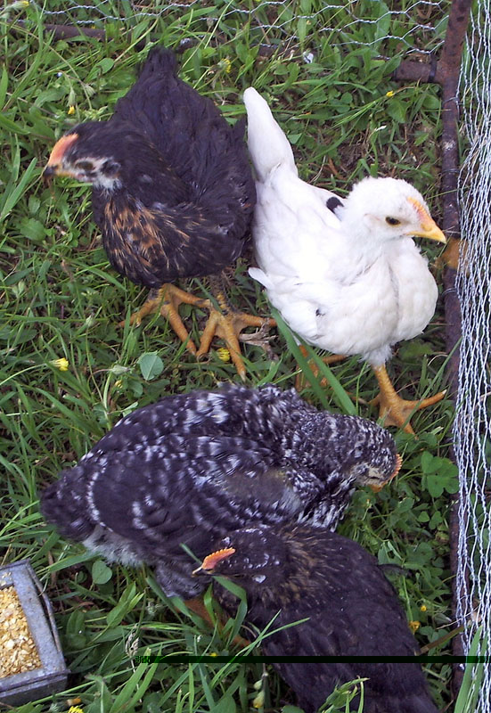 I miei pulcini a un mese. Ormai tutti giorni quando riscalda, li metto fuori. Nei primi momenti sono occupati a mangiare l’erba. Quando li chiamo si avvicinano. Sono meravigliosi. Ormai li riconosco anche dall’carattere. Poche femminucce. I nani (4) sono i più teneri.