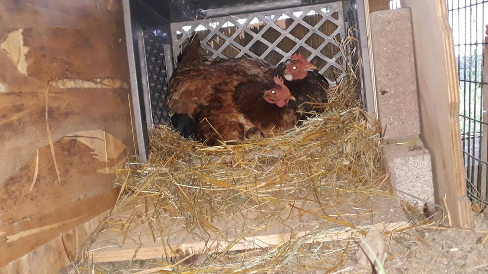 Abbiamo 3 galline; le 2 che ci ha regalato il vicino hanno iniziato a covare e le abbiamo lasciate fare.