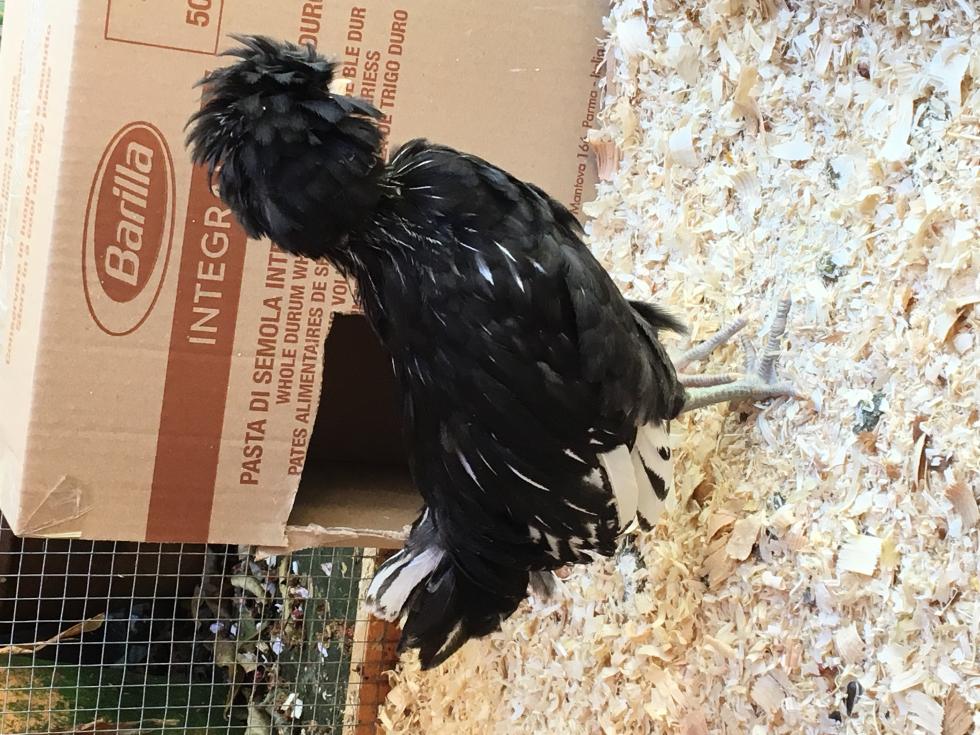 Lo scorso dicembre ho iniziato la mia prima esperienza con un pollaio e delle galline, due livornesi bianhe, per la precisione. Ho un pollaio in legno di quelli che si acquistano prefabbricati sul web che purtroppo non è molto grande ma la voglia di aggiungere qualche altro animale è incontenibile e una decina di giorni fa ho acquistato per 10 euro questo pulcino di padovana argento orlato nero. Lo sto tenendo in quarantena perché le due livornesi lo aggredirebbero e sembra si stia abituando alla sua nuova casa. Le galline hanno comunque a disposizione un giardino di 300 mq dalla mattina alla sera, quando poi le chiudo per sicurezza. Ora vi chiedo innanzitutto se effettivamente vi sembra padovana argento orlo nero perché lo vedo tutto nero. Secondo: ho letto sul web che il sesso si capisce più avanti con i mesi, e il venditore mi ha assicurato che fosse femmina (vivo in città e un gallo col suo canto mi darebbe non pochi problemi con i vicini...). Mi confermate? In ultimo, io lo sto alimentando con lo stesso miscuglio che do alle galline? È inadatto o va bene anche per lui?