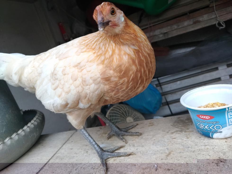 Ho preso questa mezza gallina, nella confusione non ho potuto chiedere di che razza fosse, però me l'ha lasciata a 10 euro.