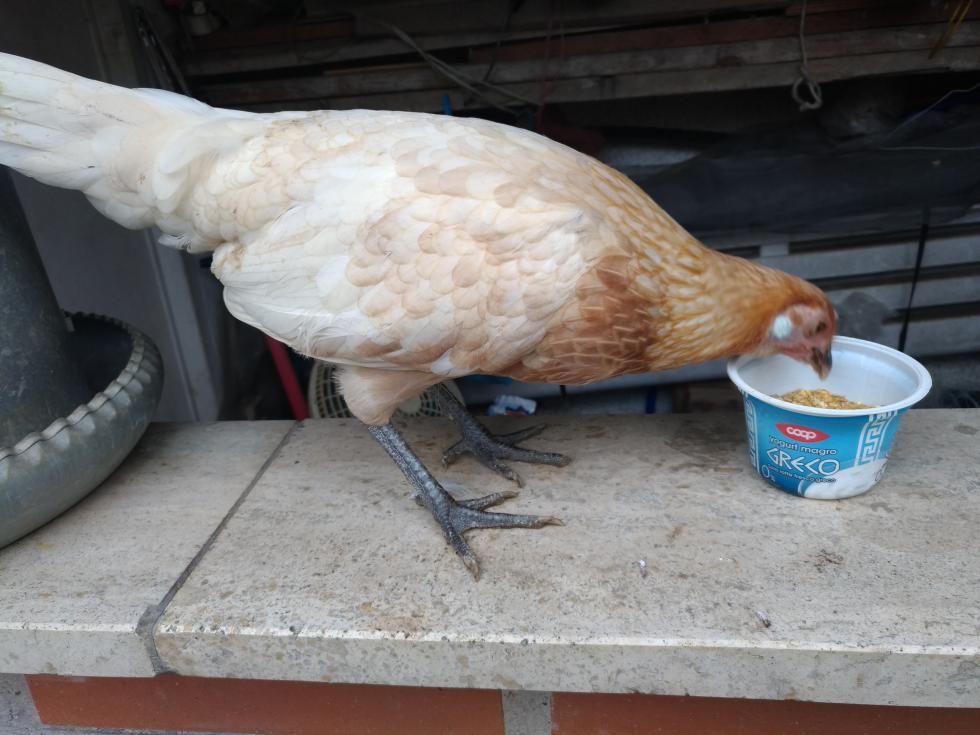 Ho preso questa mezza gallina, nella confusione non ho potuto chiedere di che razza fosse, però me l'ha lasciata a 10 euro.