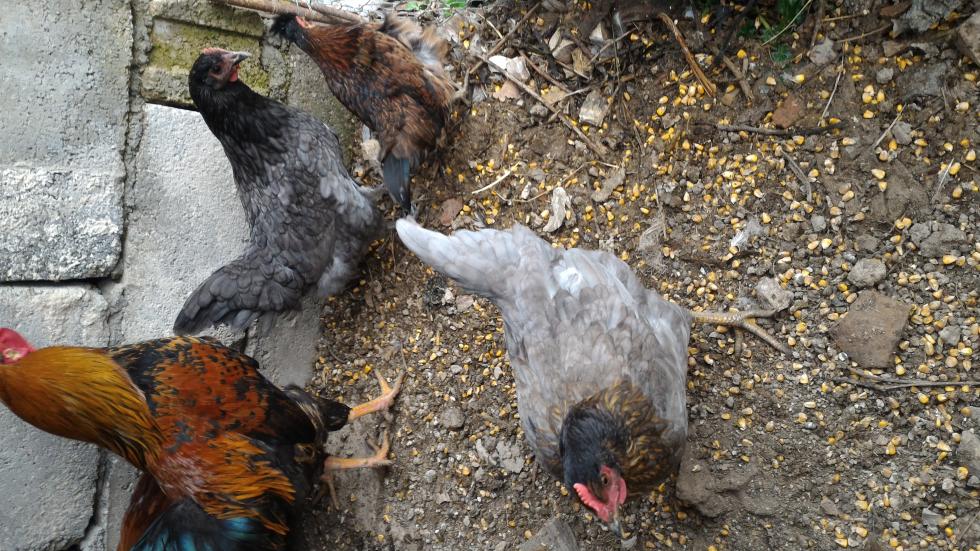 Due pollastre incrocio, figlie del gallo in questione.