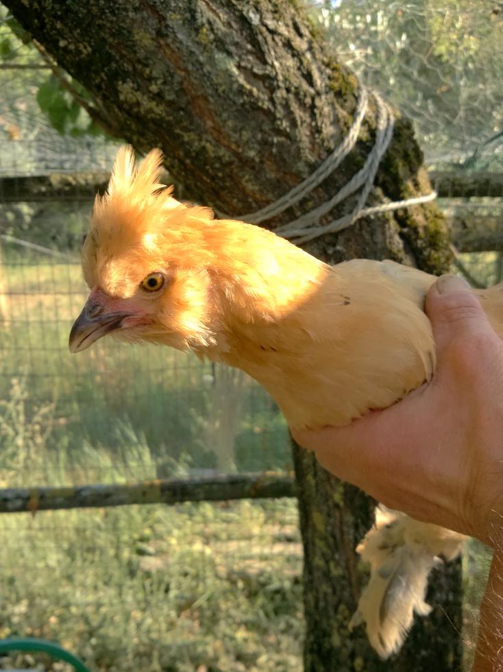 Vista la piccola taglia escludo che sia faverolles, credo che sia un incrocio di araucana, ma il fatto che non faccia le uova azzurre mi insospettisce(gli incroci che discendono dalle araucana depongono sempre le uova azzurre)