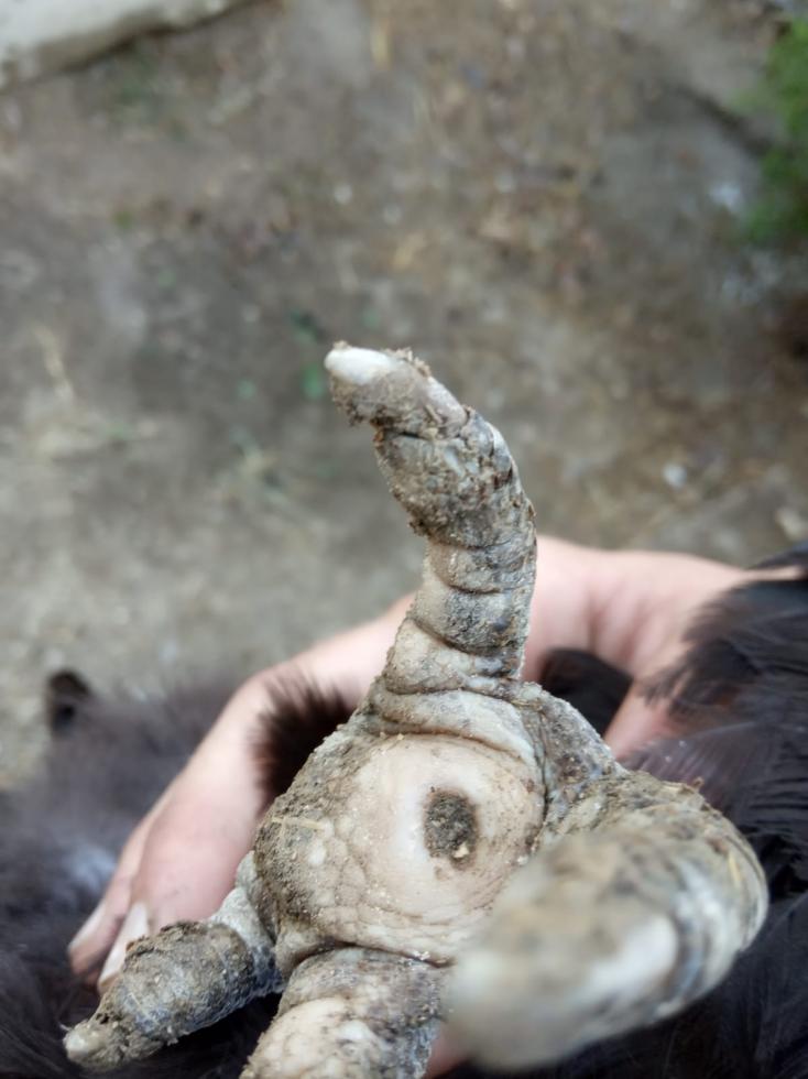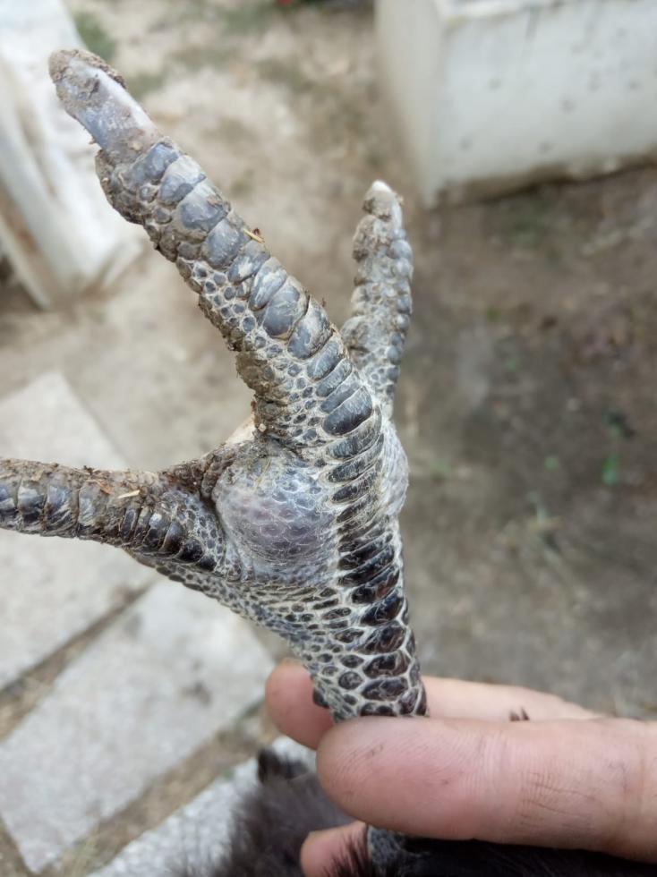Quella "ferita" si chiama bumblefoot, recentemente è successo anche a me. Ho portato la gallina dal veterinario e ora la sto curando io a casa secondo le sue indicazioni: un giorno lavo la zampa con acqua e sale, poi metto una pomata a base di urea, il giorno successivo la lavo con acqua ed euclorina e poi ancora pomata. Così facendo dovrebbe guarire...