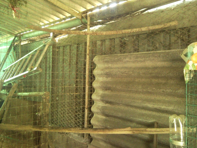 Questo è il mio pollaio attuale in attesa della fine dei lavori. Lato SX in ristrutturazione, lato DX dove dormono attualmente le mie nanette, + gabbia di cova, posatoi, covi, contenitori misto polli, (granaglie) franto, spezzato.