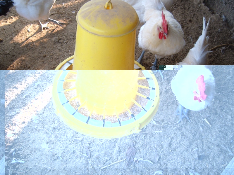 ecco la soluzione che ho trovato: fil di ferro in modo che i polli non riescano a raspare con il becco e disperdere il mangime sul terreno. staremo a vedere. ovviamente la mangiatoia non è appoggiata per terra, ma appesa a 3 cm da terra in modo che il movimento agevoli la discesa del mangime e anche perchè essendo così mobile i polli non possano salirci.