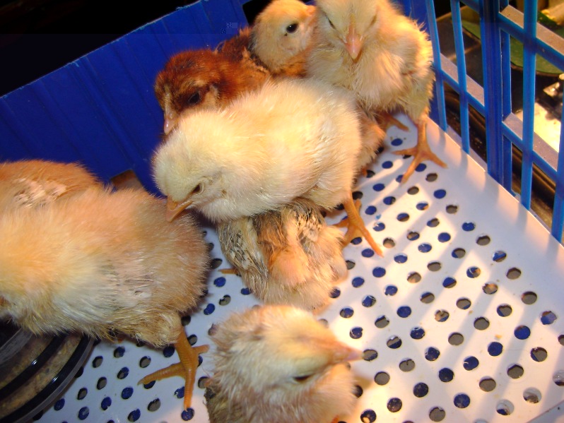 Ora i 10 pulcini stanno bene, sono ancora nell'incubatrice, a 26 gradi (ho diminuito gradualmente la temperatura di circa 2 gradi al giorno per abituarli).