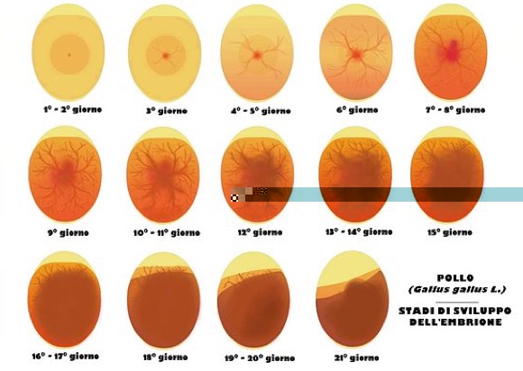Comunque la tabella è perfetta. Meglio di quel video in bianco e nero su youtube che fa vedere l uovo giorno per giorno..day by day , in inglese , e documenta ogni fase di crescita dell embrione ma che mi ha fatto prendere un colpo perchè se già al 12 giorno il "pulcino di youtube" sembrava gli mancasse solo la cresta ....il mio invece faceva acqua da tutte le parti... Si rotolava nel liquido come un microscopico vermicello....Forse si nascondeva dal farsi vedere per paura di non avere nè zampe nè becco e di essere postato come un brutto anatroccolo su youtube E POI VI PREGO LI VOGLIO CONOSCERE ANCHE IO QUEI CONTADINI DI UNA VOLTA CHE SOLO METTENDO L UOVO CONTROLUCE AL SOLE , AL 7 GIORNO , OLTRE A DIRTI SE ERA FECONDO O NO , TI DICEVANO PURE IL SESSO!!!!!! MA CHI SONO??????...QUELLI DI CSI????