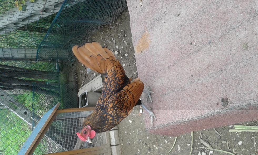 Le Sebright oro alla fine si sono rivelate due maschi e due femmine, ma uno dei maschi (quello nato per primo) è strano, lo chiamo sempre Coso perché non so proprio che cosa sia. Domani vi metterò la foto, sembra un Sebright ma ha le caratteristiche di un galletto normale, ovvero piume della coda a falce lunghe, collo con piume lunghe e rosse e anche le piume che non ricordo come si chiamano (quelle sopra la coda) si sono allungate. Ha l'orlatura ma è strana. Gli altri tre sono stupendi. Le limone alla fine sono tre femmine, devono ancora terminare la muta perché hanno un'arlatura orribile ancora (spero diventino come le oro) ma anche qui c'è un problema, mentre due sono identiche alle altre due galline oro, una delle limone è poco slanciata pesante e soprattutto molto tozza. La chiamo sempre mostriciattolo perché è minuscola ma cicciona. Avevo in mente di mettere lei e quella sottospecie di gallo oro insieme per vedere cosa sarebbe venuto fuori. Domani vi posto le foto di tutte e in particolare di questi due "sebright".