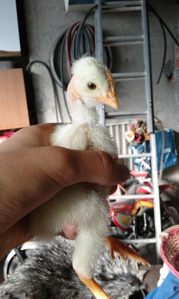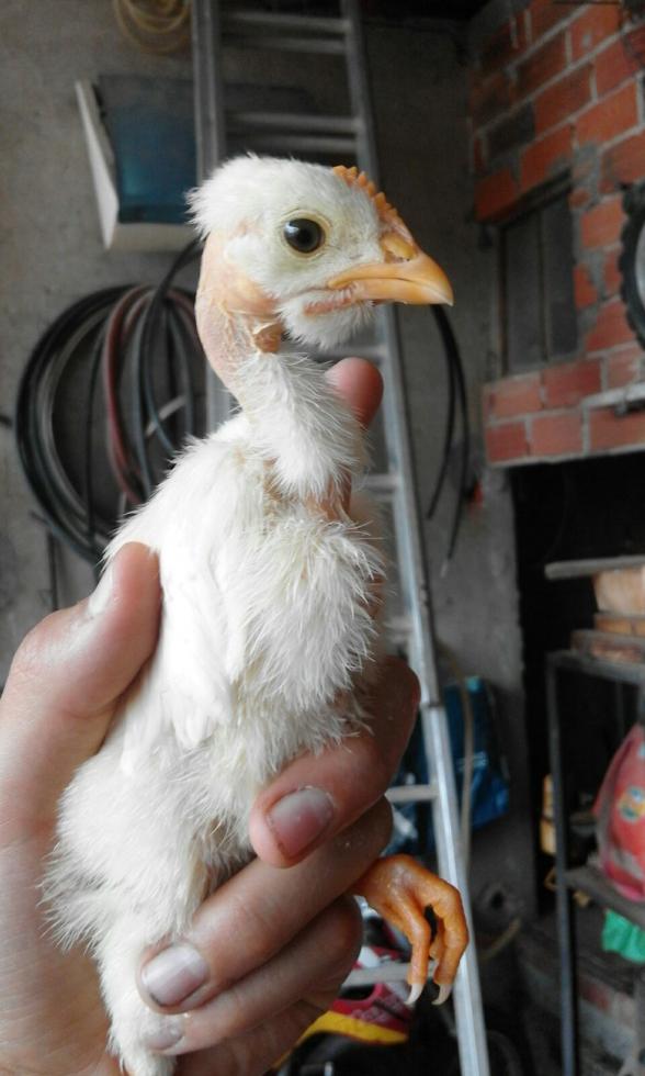 Pulcino incrocio gallo livornese per gallina collo pelato presunto maschio