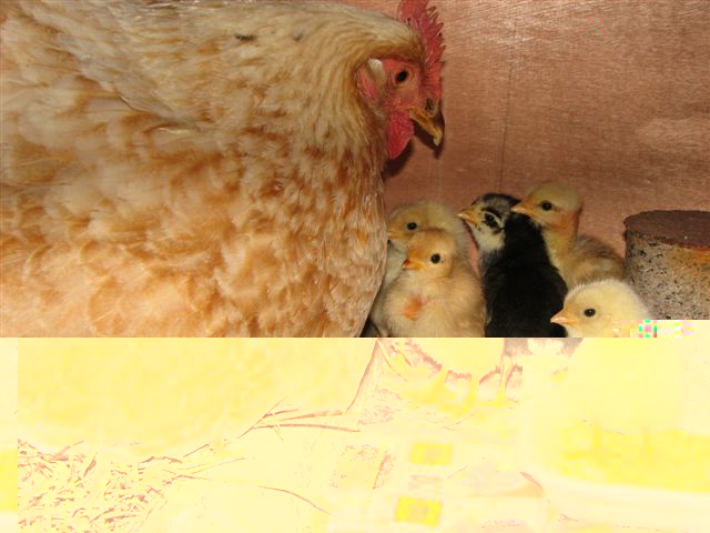 La chioccia ha fatto il suo dovere, nonostante due interruzioni di covate per circa 4 ore ognuna al 10 giorno e al 15 giorno, sono nati 10 pulcini su 17. Due sono morti in fase di schisa, schiacciati dalla chioccia e ne sono rimasti 8, bei vispi. Durante la cova la chioccia era scesa dal nido per scaricarsi e si scaricava male (molto liquido) e non tornava nel nido. L'ho dovuta riporre io. Pensavo fosse andato tutto storto ed invece ecco i pulcini. Pietro
