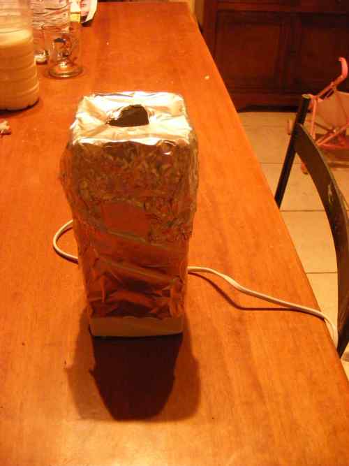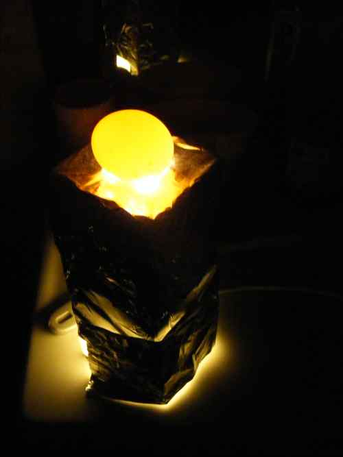 ti dico anche la nostra và: avvolto una lampada (quelle da comodino) con carta stagnola, fatto buco sopra in modo da "inquadrare" bene l'ovetto. se tutto intorno è buio si vede benissimo.