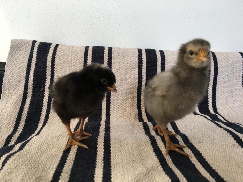 Questo è il pulcino di araucana, è nato da un uovo a guscio azzurro.
