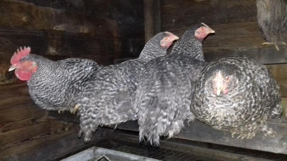 Nella foto si vedono solo 3 galline più il petto di un 'altra ed il gallo, perchè una non sono riuscito ad inquadrarla