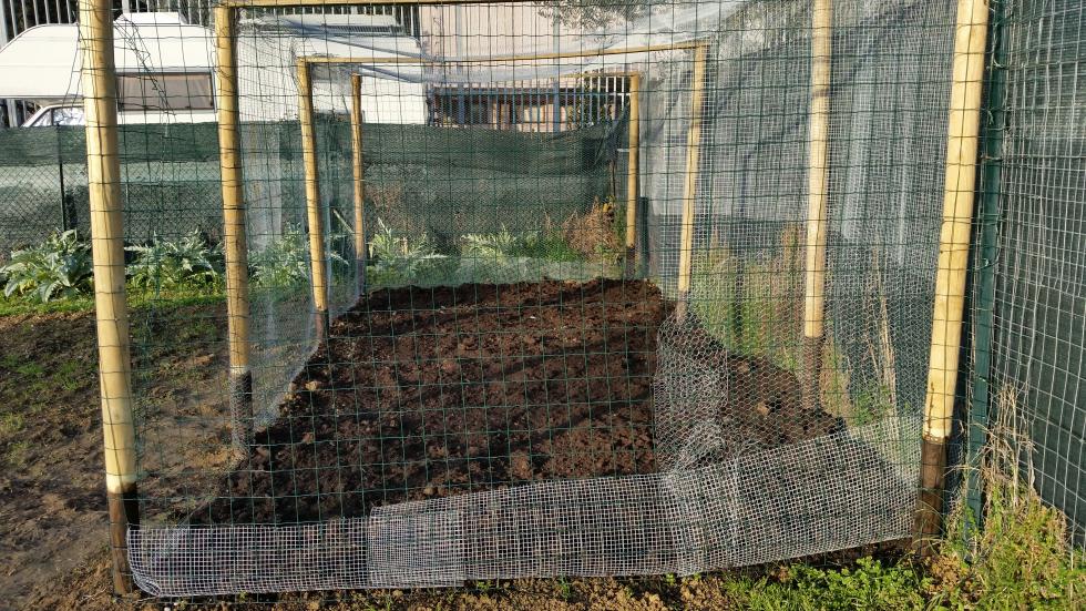 Sabato sono riuscito a finire il gabbione, e ho iniziato a tappare la rete del pavimento con dei riporti di terra, devo fare ancora 2/3 viaggi per avere un buono strato.