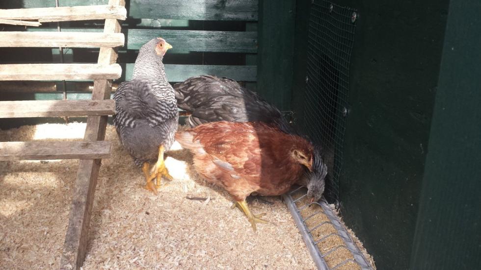 Allora, finalmente sono andato a prendere le pollastre!!!! 47 anni e felice come un bimbetto a natale!!! L'idea era di 4-5 galline esclusivamente per le uova, niente gallo (per le case a una 50ina di mt  ) La scelta è caduta su una Livornese Argento, una Ancona, una Rhode Island, una Amrock e una Jersey gigante So che state storcendo il naso per la Jersey, "che ci combina con le ovaiole?". Sono andato a prenderle con i miei nipoti di 6 e 12 anni , ho scelto la razza e loro il soggetto. Arrivati a 4 ero a posto ma loro hanno voluto che prendessi anche (non c'è voluto molto per convincermi) una figliola di "quel mostro gigante nero"!!!! Metto dù foto e vi ringrazio per i commenti, belli o brutti!