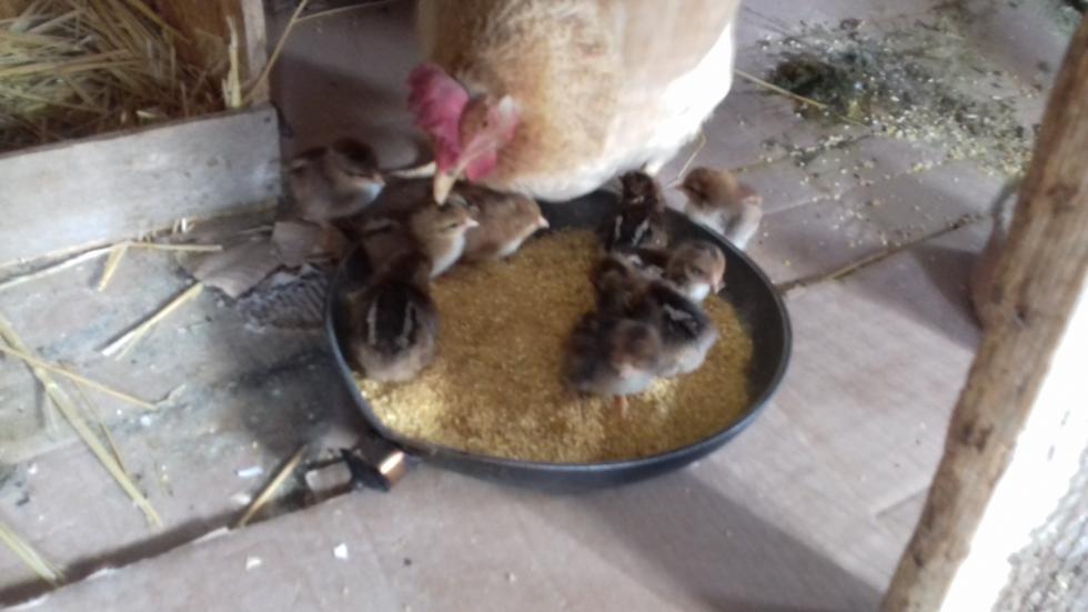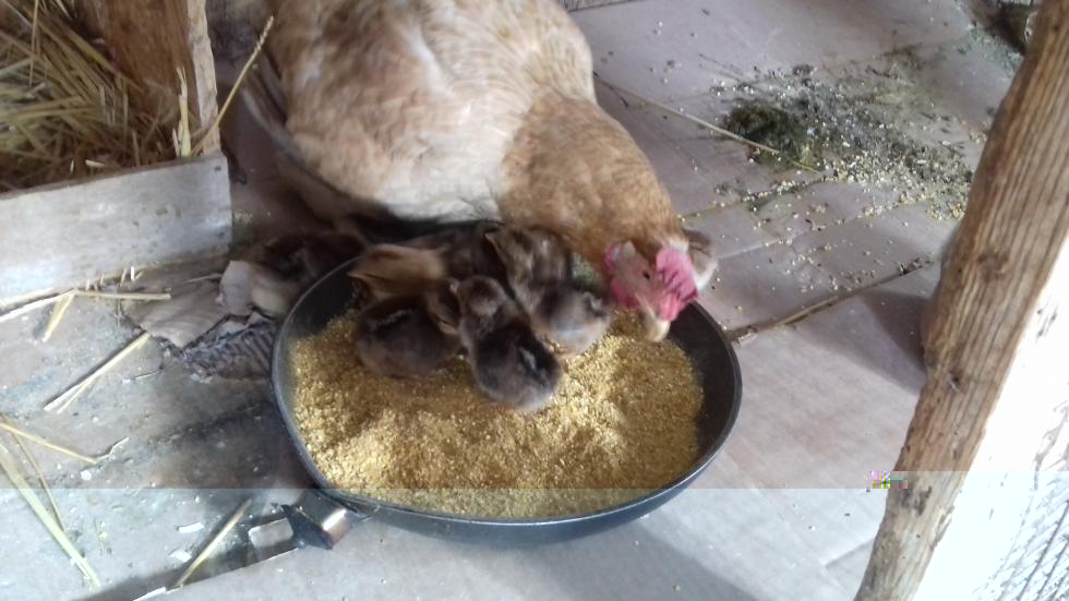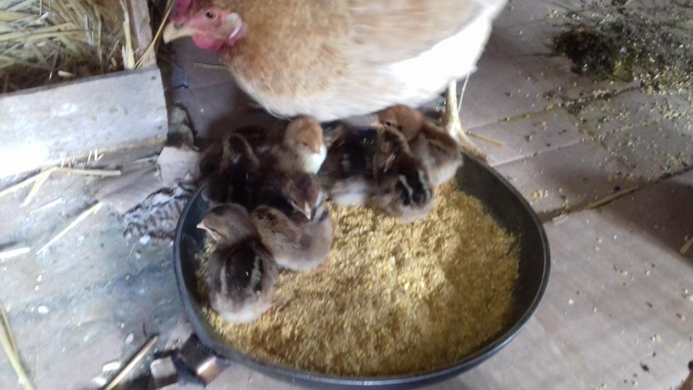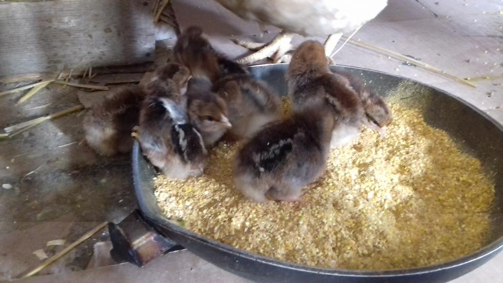 Eccoli! I primi nati del 2018. Ieri nel tardo pomeriggio sono tornato a controllare e solo 5 erano completamente asciutti. Degli altri 4, 2 erano quasi completamente fuori mentre 2 erano molto in difficoltà. Sicché li ho aiutati, visto che respiravano appena. Non avrei mai detto che avrebbero passato la nottata, invece questa mattina li ho trovati tutti 9 vivi. Il bilancio è: 12 uova fertili su 13 (92,3%), di queste 12, 9 ne sono nati (75%). 2 delle altre 3 uova hanno avuto un arresto dello sviluppo a circa metà covata. Mentre 1 l'ho trovato schiacciato venerdì mattina (quindi ho la chioccia ha rotto incidentalmente l'uovo ed il pulcino non è riuscito a sopravvivere perché troppo presto o è nato ma la mamma lo ha schiacciato)
