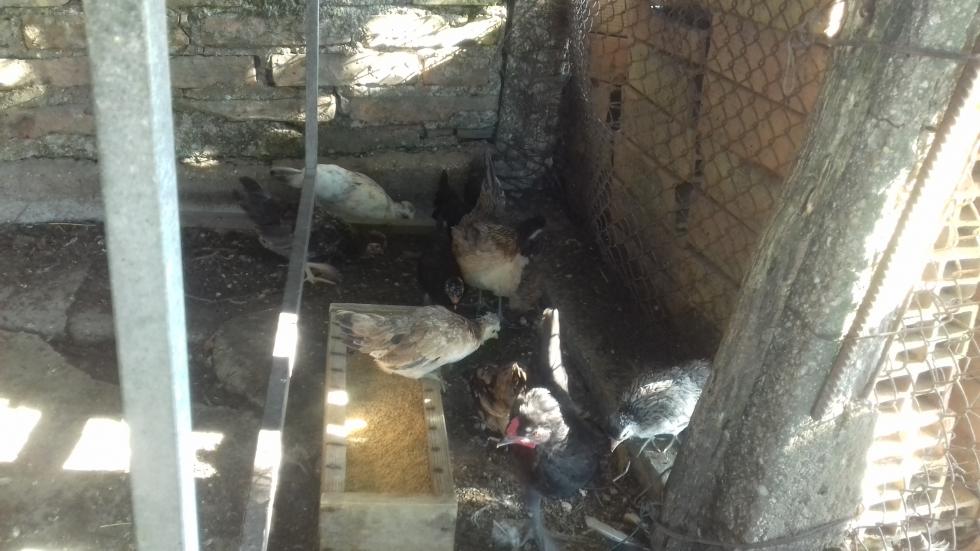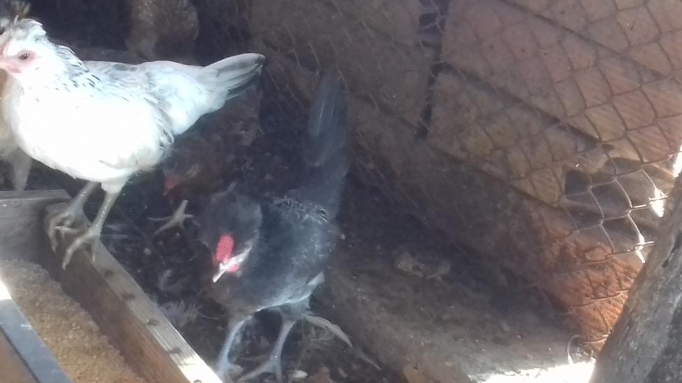 Qui si vede proprio il galletto nero con il ciuffo ed a sinistra si vede una delle galline più belle secondo me