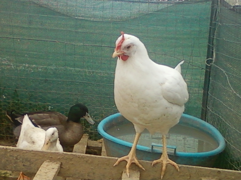 sapete precisamente la razza e se sono entrambe femmine le bianche <? ecco la broiler di 1 anno che cova... da 3 gg... di fila, e guardate come l hanno combinata i 2 galli...