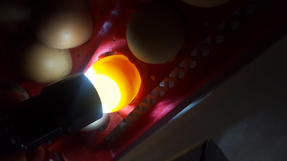 Questo è il mio primo argomento quindi non so come funziona qui, ma buongiorno a tutti. Ho incubato uova di gallina da sei giorni e mezzo l'umidità la mantengo sempre tra il 44% e il 56% mentre la temperatura non è sempre fissa oscilla tra i 37,3° e i 38,4°, la mia incubatrice non riesce a tenerla fissa (è una bk-15 pro incubator presa su amazon), il gira uova è automatico lo impostato che gira le uova per 3 minuti e 20 secondi ogni ora. Ho incubato 15 uova alla prima speratura, oggi, ho visto che 4 non erano fertili, 10 c'era le vene e uno è come in foto. Non so il peso perché come consigliato non le ho prese in mano. L'anno scorso ne ho incubato 9 e non ne è nato nessuno, quest'anno avevo sbagliato e le avevo messe col polo ottuso verso su, al terzo giorno me ne sono accorta leggendo un argomento di questo sito e le ho girate. La vera domanda è: ho sbagliato qualcosa?? Cos'è questo uovo?
