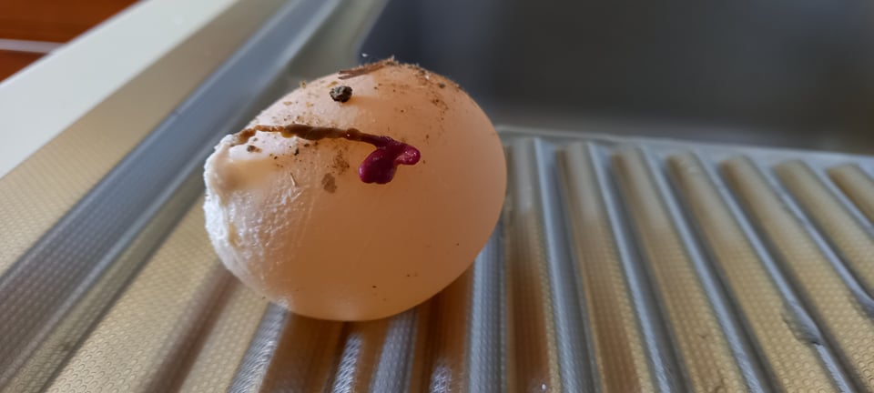Salve, stamani ho trovato nel pollaio l'uovo anomalo che allego in foto. Le galline presenti nel pollaio sono ovaiole di colore nero. L'uovo è senza guscio con una sola membrana e inoltre sembra intravedersi un pezzetto di carne della gallina. Finora ho sempre raccolto uova normali, a cosa può essere dovuto? Cosa posso fare? Grazie mille anticipatamente.