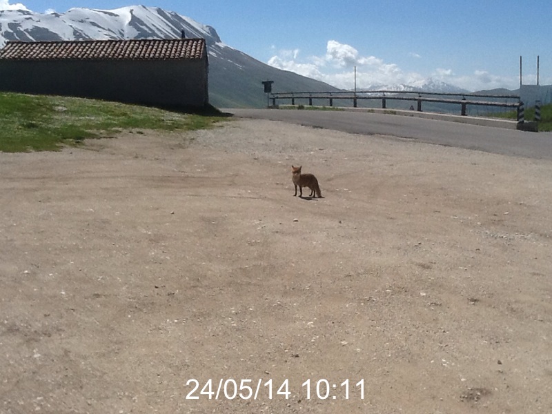 Se non sbaglio le foto sono state scattate nei pressi di Castelluccio di Norcia. Ci sono due volpi che prendono il cibo dalle mani.