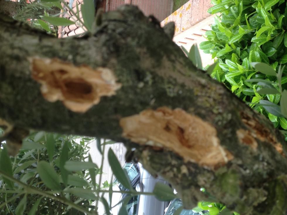 Salve, vivo in provincia di Bologna, ho un ulivo in giardino, questa mattina ho trovato dei buchi preoccupanti su un ramo. qualcuno sa dirmi di cosa si tratta?