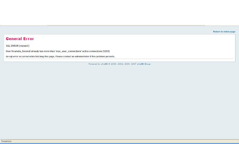 Scusate, succede anche a me a volte mentre navigo sul sito. Un suggerimento- Io sviluppo software per lavoro. Il problema è dovuto al numero di utenti concorrenti (che utilizzano nel medesimo istante) sul database. E' una buona cosa nel senso che significa che ci sono molti utenti chenavigano sul sito. Per ovviare dovreste aumentare il numero massimo di connessioni concorrenti modificando la configurazione del file php.ini oppure aumentare il valore di MySQL connection timeout timeout. So che per chi non è addetto ai lavori è un pò complesso ma il vostro amministratore di sistema saprà sicuramente farlo (sempre che non abbiate un numero massimo stabilito per contratto dal vostro provider). Un saluto a tutti e grazie per il vostro lavoro.