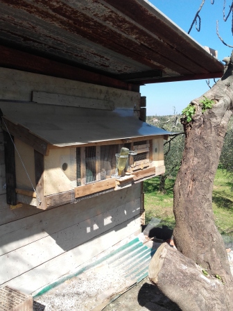 La voliera è questa, hand made, il lato retro è la stanza dei conigli dalla quale è separata da 4 cm di legno ed è il lato nord.
