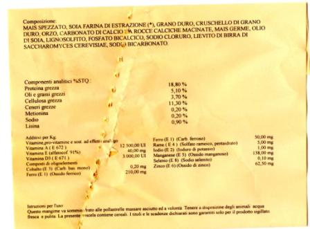 Salve. Ho trovato questo mangime x pollastre che ha un buon contenuto proteico. Non so se si legge, ma contiene il 18,8 di proteina grezza. Volevo sapere a cosa vado incontro integrandolo con un'altro 17% di farina di soia.