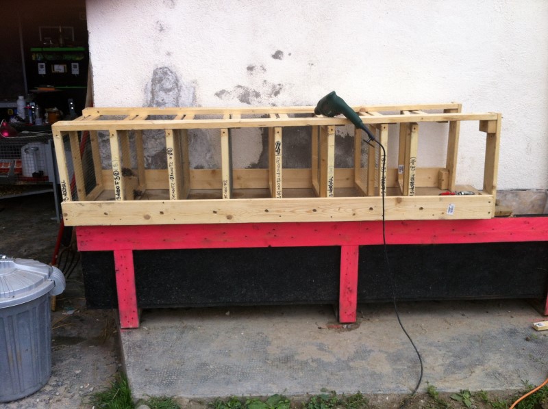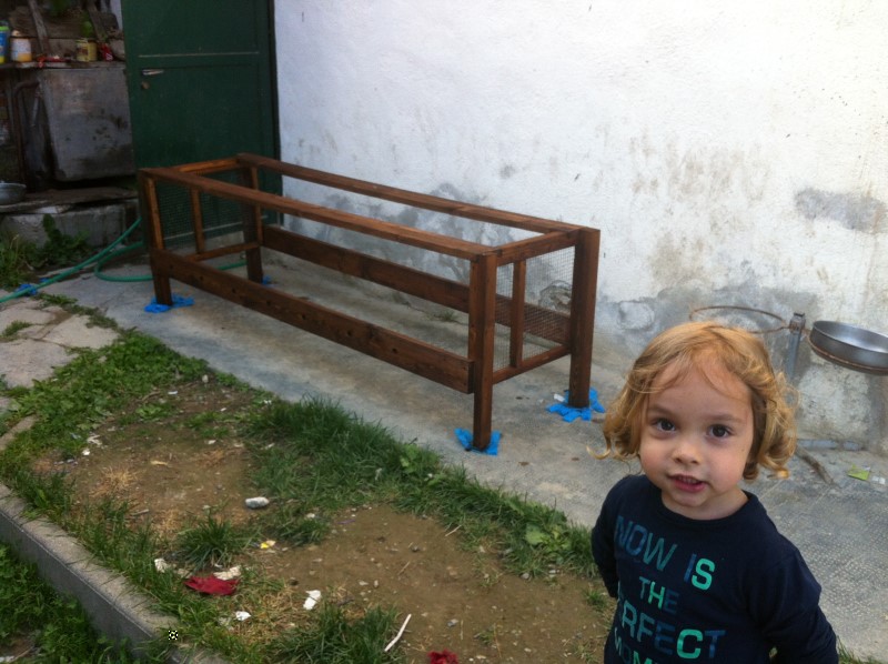 ho ancora aggiunto 4 gambe laterali per mantenere tutto sollevato da terra ed ora sto iniziando a dare le mani di impregnante..
