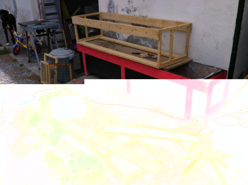 ciao a tutti! finalmente mi sono deciso a prendermi qualche quaglia ovaiola e quindi prima di tutto mi ritrovo a dover pensare alla loro sistemazione..deciso a fare tutto con la minor spesa possibile mi sono avventurato nel mio garages\magazzina alla ricerca di legno da riciclare..subito avevo pensato di fare il tutto con dei bancali ma poi..lampo di genio..dietro montagne di roba accumulata trovo tre strutture in legno che ben si sposano con la mia idea di gabbia e decido di cannibalizzarne una per recuperare il + legno possibile..