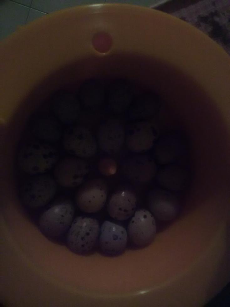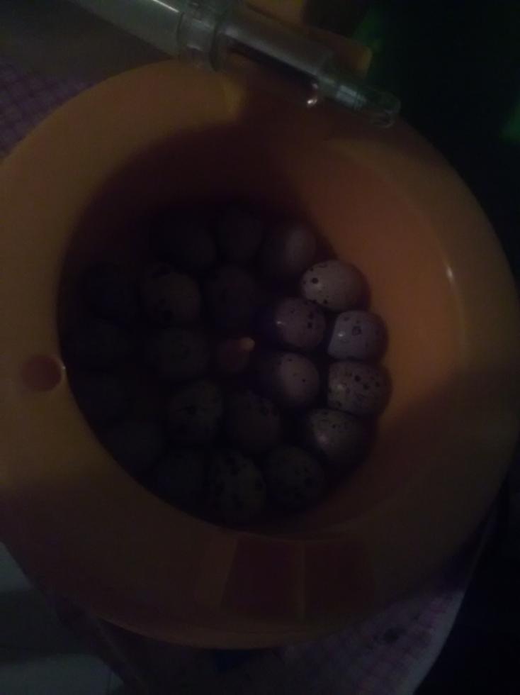 Auguratemi buona fortuna. Nuova incubata 5 uova di quaglia da volo e 16 da carne. Speriamo questa volta vada bene. Incrociano le dita. Allegato: