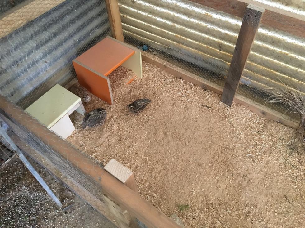 Buongiorno a tutti, mi chiamo denis sono un neofita sull'allevamento della quaglia (credo giapponese), il negoziante ha detto solo che sono quelle da carne quindi vorrei capire bene di quale si tratta, inoltre ho abbozzato questo piccolo recinto di 2,5 metri di lunghezza per uno di larghezza e alto 70 centrimetri, con tanto di cove, ripari, abbeveratoio e mangiatoia. Mi piacerebbe sapere le vostre impressioni e capire dove ho sbagliato e se sono stato un po bravo in quello che ho fatto. Posto le foto del recinto e delle mie cinque quaglie 1 maschio e 4 femmine. Grazie a chi risponderà.