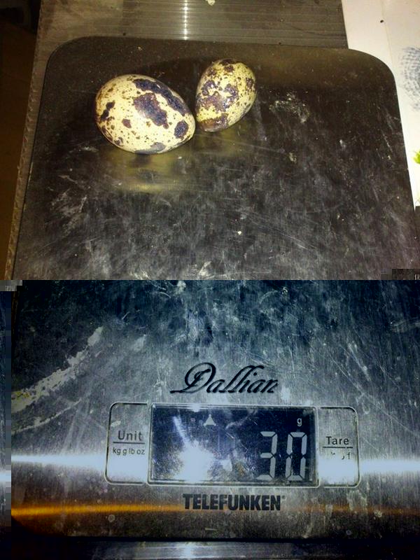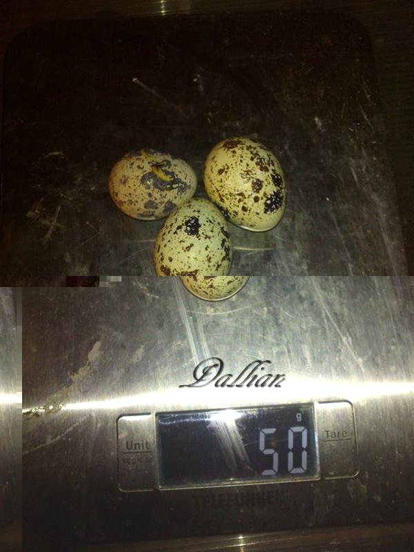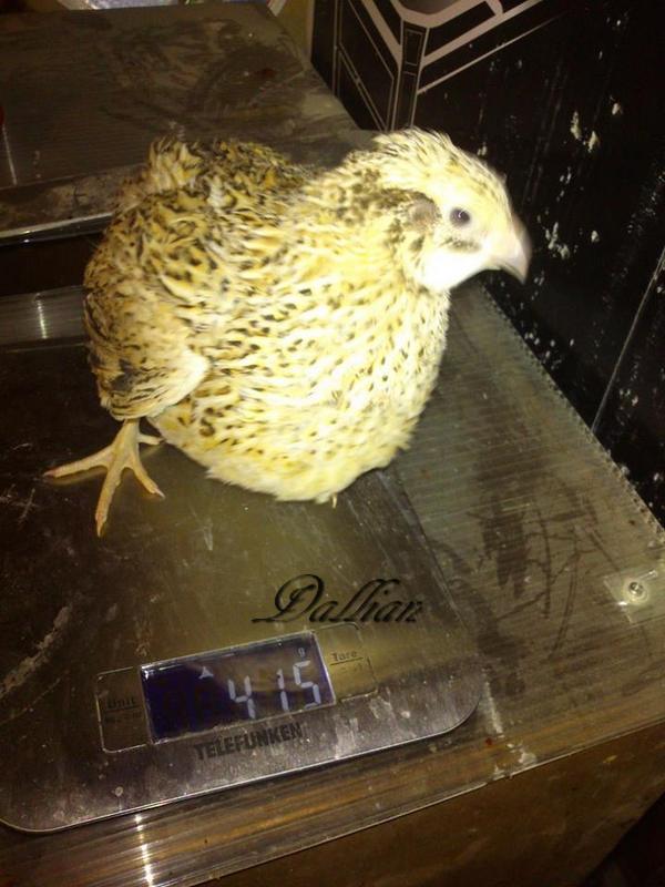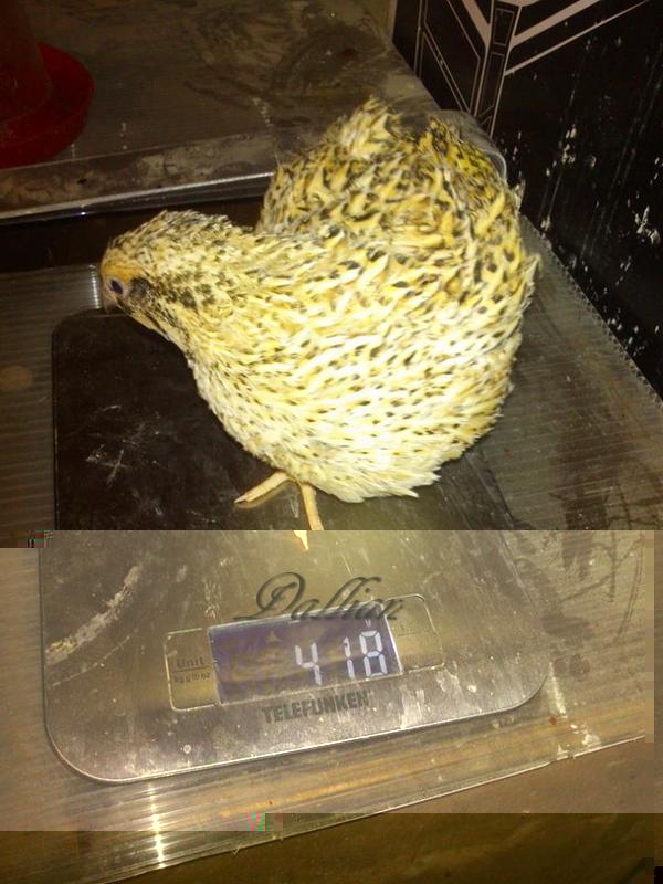 Le mie, da carne normali, pesano in media vive 160 grammi (infatti ho esemplari che pesano anche 140 ed esemplari che arrivano massimo a 170-180, ma il peso medio è quello di cui sopra): queste quaglie provengono da un allevamento scadente che ha quaglie da carne piccole ed allevate da anni solo in consanguineità (infatti mi pare di notare diversi problemini probabilmente causati da ciò, anche se comunque le uova le fanno). Comunque dopo Pasqua ucciderò le mie attuali che ormai hanno poco più di un anno e poi deciderò (rivolgendomi ad un altro allevamento) se incubare uova oppure acquistare altre quaglie (così avrei subito molte femmine per le uova) e poi incubare le loro uova.