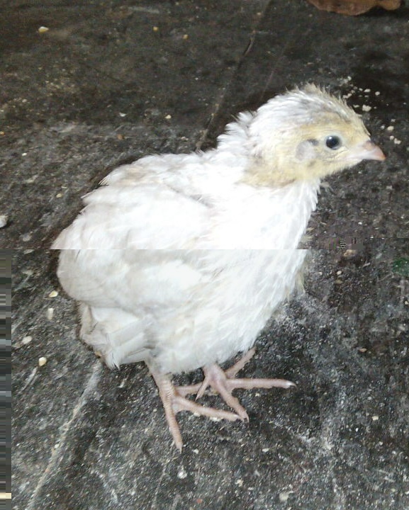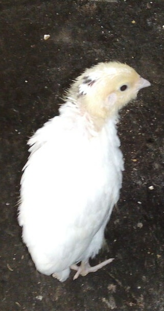 Salve? Belle le quagliette, la prima, quella con zampette scure e una Rosetta, quella bianca possibile che sia una Texas A&M ( la vedrai quando cresce, le texas hanno il petto pieno, a forma di pera, e sono più grosse delle solite quaglie bianche, la coda e più corta) lo standard ha una macchia di colore selvatico sulla testa e sulla schiena, ma quella sulla schiena può farsi vedere anche più tardi quando mettono le piume di adulto. L'ultima sembra una classica ma può essere una Roux Dilute, varietà che somiglia alla classica ma con delle sfumature di rosso, giallo, grigio, bianco... comunque di un colore più chiaro della classica quaglia. La Roux Dilute e una mutazione preziosa per il suo carico genetico e di base per chi vuole lavorare e scoprire nuove colori e mutazioni. Da seguire e non perdere perché sono abbastanza rare come il Lavander e le Snowy. Purtroppo per un mio sbaglio la Snowy e diventata una mutazione commerciale per alcuni commercianti che la chiamano ''Jumbo White'' o ''Golden White''.