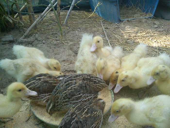da qualche giorno ho unito alle quaglie 10 anatre di 15 g e devo dire che convivono bene