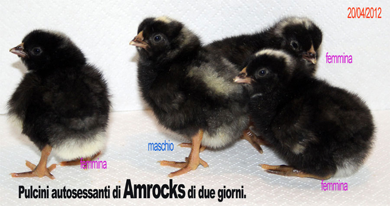io non ho mai visto un amrock coi tarsi piumati... hanno le zampe gialle e basta. vedi come evolve, magari mettigli un cerchietto nella zampina. Ho fatto schiudere numerose incubate e non mi sono mai usciti pulcini così. Una mia gallina ha magari una super codona ma nulla più. E' un bel mistero! I maschi si distinguono dalle femmine per il caratteristico puntino sulla testa. Cmq a 1 settimana circa non appena si impiumano sai se è maschio o femmina, dovessi avere ulteriori dubbi. Io ho anche degli ibridi amrock per orpington ma hanno tutti le zampe bianche con l'orpington. Spero domani di trovare il tempo per fare un video e mostrarti le differenze. Ho dei pulcinotti di 2 mesi e cascano a fagiolo per vedere le differenze razza pura ibrido.