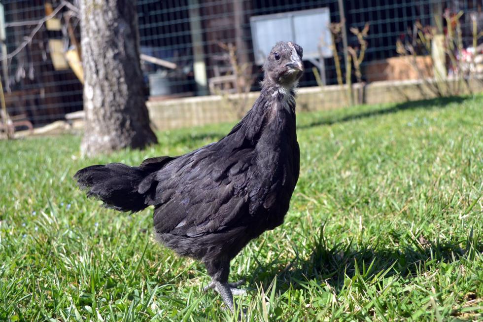 Questo pollo è quello che aveva un po' di bianco sulle ali quando aveva un mese. Ha sempre avuto una cresta più pronunciata rispetto alle sorelle e ora anche la coda è più sviluppata. Ma non mi sembra un gallo...