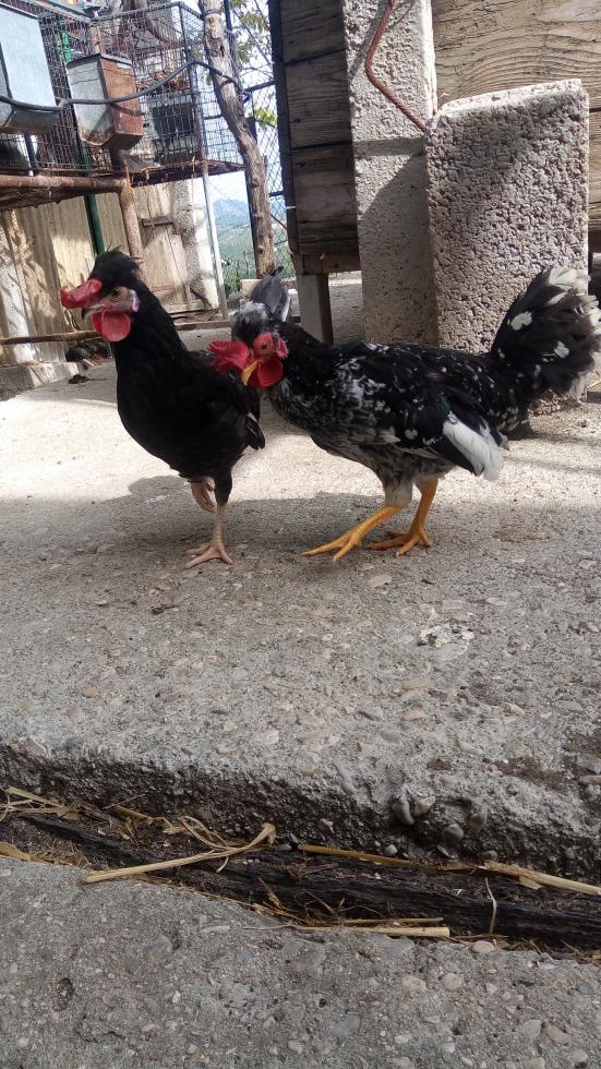 Salve a tutti!!! L'altro giorno ad una fiera dell'agricoltura mio marito ed io abbiamo acquistato questi due esemplari di polli...a causa del marea di gente che c'era, di nostra figlia che non stava ferma e del venditore non molto loquace e poco esperto, le informazioni riguardo questi polli che abbiamo ottenuto sono pari allo zero. Su internet non si riesce a trovare la razza a cui appartengono, difatti pensiamo si tratti di ibridi. Attualmente si trovano nel pollaio con 5 ovaiole di due anni e i rapporti non sono dei migliori, hanno un bel caratterino. Ciò che vorremmo sapere è questo: SONO MASCHI, FUTURI GALLI, O FEMMINE? (Chi li vede e dice che sono due maschi e chi dice sono due femmine) e poi PIÙ O MENO QUANTI MESI HANNO? Grazie in anticipo a coloro che risponderanno!